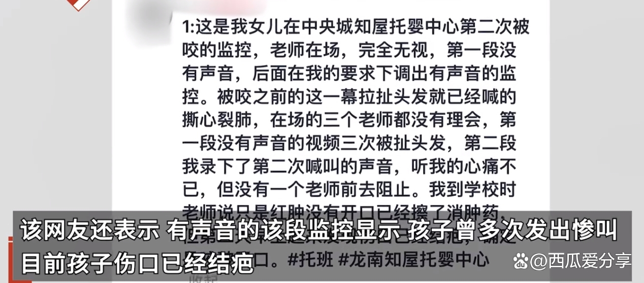 最近,江西赣州的一则令人震惊的事件引起了广泛关注。据网络传闻,在一家托婴中心,一名孩子遭到同学的拽头发、咬伤,而老师竟然全程无视。这一消息迅速引起了公众的愤慨和关注,许多人对该托婴中心的管理和教师的素质提出了质疑。