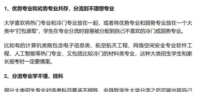 知名教育博主张雪峰曾在2024年初发布专题解读视频,系统剖析“大类招生”的双重属性: