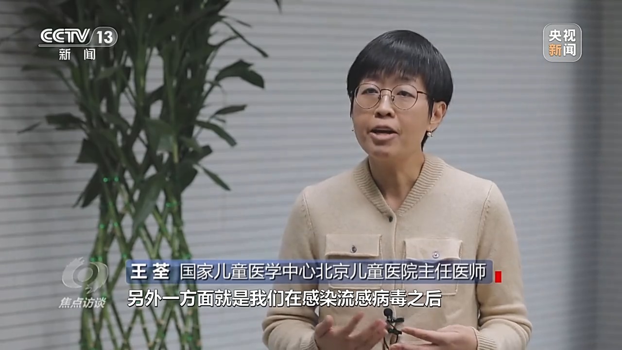 国家儿童医学中心北京儿童医院主任医师 王荃:积极接种疫苗是非常重要的。一方面,可以尽力保护我们不感染流感病毒,另一方面,我们感染流感病毒之后的热程和疾病严重程度会缩短,也就是说进展为重症的概率会小很多。