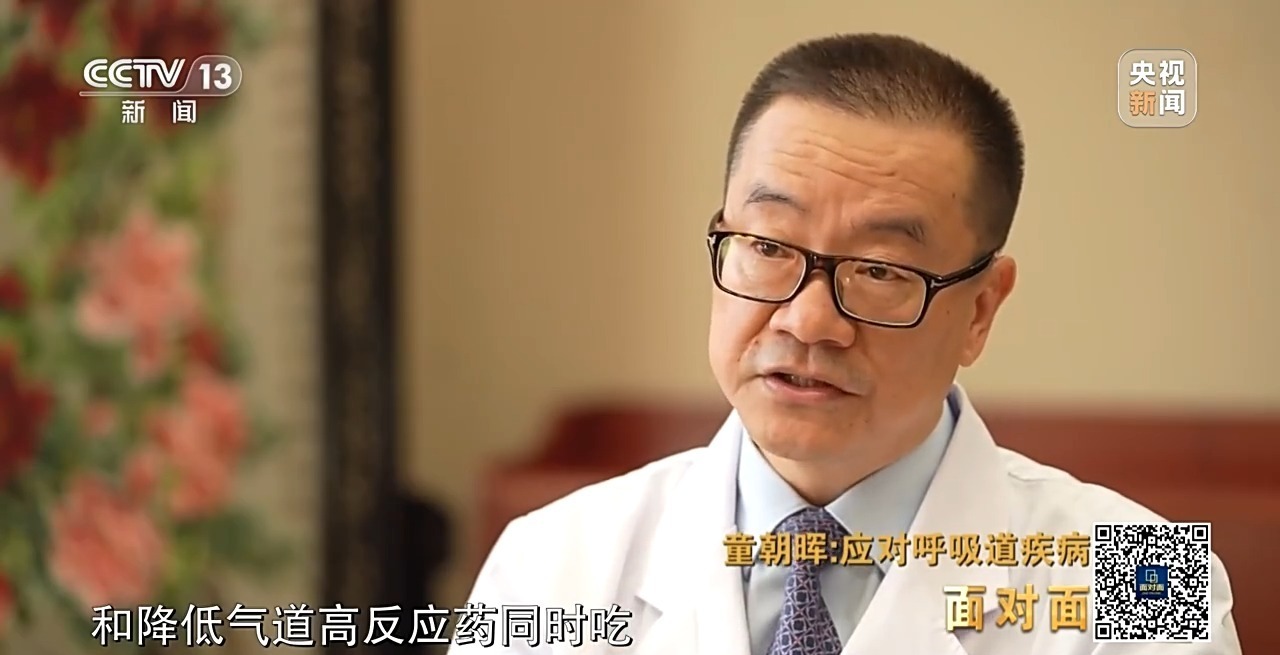 童朝晖:对症处理,止咳,这个在临床上是有办法的。我们有一些止咳药,有一些降低气道反应的药,有时候需要把这个止咳药和降低气道高反应药同时吃,效果还是非常好的。