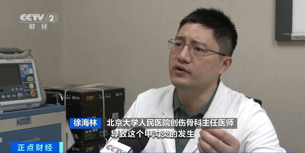 北京大学人民医院创伤骨科主任医师 徐海林:如果勒得过紧挤压肉和指甲,导致甲沟炎的发生,脚趾也会造成长期的屈曲,时间长了容易导致足趾的疾病,包括肌腱挛缩等,最后影响人的行走功能。