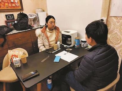 浦东三林工作站工作人员(左)倾听帮助对象的心声。