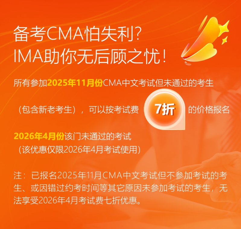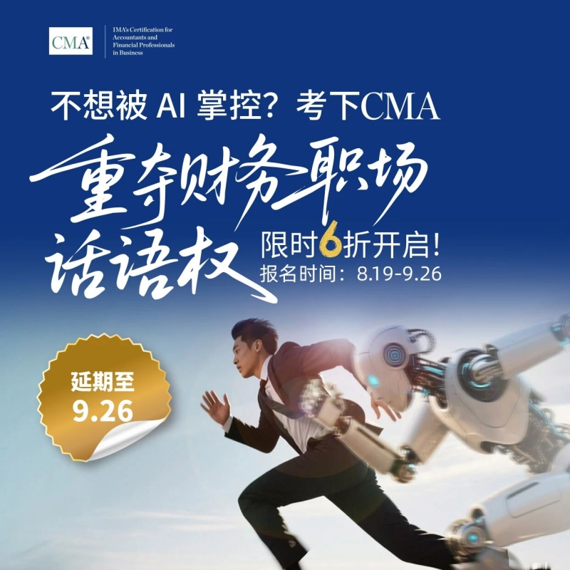 为助力财务专业人士深入学习管理会计,提升职场竞争力并拓展优质人脉,IMA协会特别推出限时福利“不想被AI掌控?考下CMA,重夺财务职场话语权!”活动仅剩最后2,000个名额,截止日期延长至9月26日。新在职及新学生考生可享准入费与考生年费6折优惠,补考考试费7折优惠(新老考生不限,规则见下图)。名额有限,报满即止,请尽快报名,切勿错过最后机会! “CMA每日小测验”新达人 “CMA每日小测验”上线以来,注册用户报名踊跃,参与积极,经过系统后台数据统计,本期获题最多的选手为CMA持证者Jerry Wen先生,望大家继续刻苦学习,持之以恒,早日通过CMA考试。 以下是Jerry Wen先生的获奖感言: 请问您现在是上学还是工作?学什么专业 / 从事哪方面的工作? 我刚毕业,现在在一家互联网公司做财务助理。大学学的是会计学专业,刚从校园到职场,其实挺多地方都还在摸索学习。 请问您是从哪里知道CMA注册管理会计师认证的?周围考CMA证书的人多吗? 最早是通过学校的财务老师了解到的,后来实习时也听到师兄师姐聊到CMA。身边想考的人不少,尤其是那些想进大厂财务部门的同学。 你认识的CMA当中,有没有让你敬佩的,想成为和他/她一样的人? 有,我特别佩服以前实习时的财务经理。他当年拿下CMA后,就能站在更高的角度去看公司的预算和战略。他跟我说过,做财务不能只算账,还要会讲数据背后的故事,这句话我一直记着。 什么契机让你下决心要报考CMA? 刚入职的时候,公司有一个部门间预算讨论会,我完全听不懂大家在争论什么,感觉自己像“透明人”。那一刻我觉得,如果不尽快提升管理会计的知识,就会被职场淘汰。CMA正好补上了这块短板。 为这场CMA认证的考试准备了多长时间? 我大概准备了三个月吧。每天下班回家抽1小时看网课,周末去自习室刷题。虽然累,但我觉得这是对未来的一种投资。 请问您觉得在准备CMA考试的过程中对你的学习和工作有些什么帮助? 最大的收获是让我对“财务不只是报表”有了更深的理解。学到的预算、内部控制和决策分析方法,在工作中也能直接用上。比如,现在帮主管做成本分析时,我能提出一些更有逻辑的建议。 备考过程中最难忘的事是什么? 可能就是第一次模拟考试吧,当时成绩特别差,一度很沮丧。后来跟同学抱团复习,互相打气,才慢慢坚持下来了。那段日子让我感觉又找回了校园的“战友情”。 请问在您准备CMA考试的过程中,您觉得谁对你的帮助和支持最大(朋友/老师/同事/家人/自己)? 应该是我的爸妈吧。虽然他们不懂这个证书是什么,但每天都关心我“要不要给你切点水果?”、“早点休息别熬夜”,这种小细节让我很安心。 在通过CMA认证以后,是如何犒劳一下自己呢? 我给自己买了一双心心念很久的球鞋,然后约了几个好朋友一起去KTV唱到嗓子哑。 如果有时光机去往未来,你想对十年之后的自己说一些什么? 我会说:“希望你没有忘记初心。当年考CMA,不是为了title,而是为了让自己更有选择的自由。” 职业与生活的规划? 职业上,我希望三年内能晋升到财务分析师的位置,五年能进入一家大厂财务部门,真正做一些有战略价值的工作;生活上,我想保持运动习惯,等有点积蓄了,带爸妈出去旅行。毕竟,努力工作是为了过更好的生活。