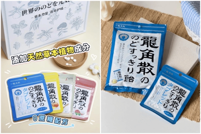 另一款经典薄荷味的龙角散草本润喉糖也十分受欢迎:清新的草本薄荷味,不刺激不甜腻,在大量背书前后用天然草本给嗓子带来温柔呵护;大颗润喉糖,可以给嗓子带来持久的滋润,颗颗独立包装,便携又卫生。