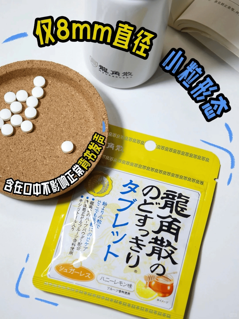 龙角散草本无糖润喉片,采用以天然草本植物为核心的配方,添加了桔梗、甘草、薄荷、金银花等多种清润护嗓的草本成分,能有效帮助咽喉保持良好状态。其直径仅8mm的小粒形态,即便含在口中也不影响正常讲话发声,适合长时间背书用嗓时使用。