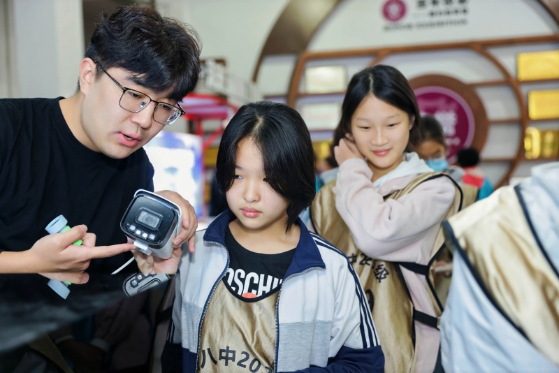 除了丰富的科普内容,一支由蔡司与宇瞳光学员工组成的志愿者队伍也成为活动现场的温暖风景。他们化身讲师、引导员与操作指导员,耐心为学生们讲解原理、指导操作。志愿者们表示,参与此项公益不仅是企业社会责任的体现,更是“产业反哺教育”理念的生动实践,看到孩子们眼中因好奇而闪烁的光芒,一切付出都意义非凡。