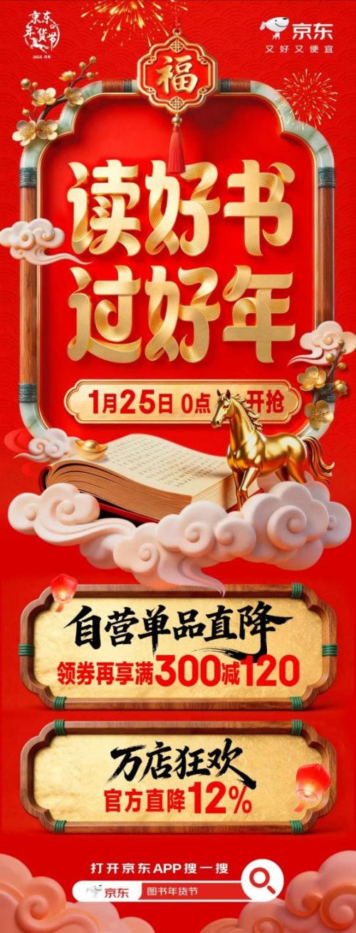 原标题:京东图书年货节开启万店狂欢 官方直降12% 领券再享满300减120