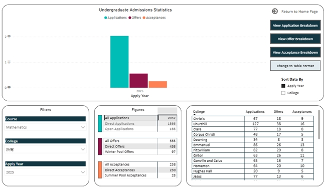 国际学生申请部分专业时,雅思成绩需达到总分7.5 分且单项不低于7分。从剑桥大学发布的《Overseas Admissions By Domicile》数据来看,2024 年中国大陆地区共有2308人递交申请,仅343人收获 offer,offer发放率为 14.9%,竞争激烈程度可见一斑。