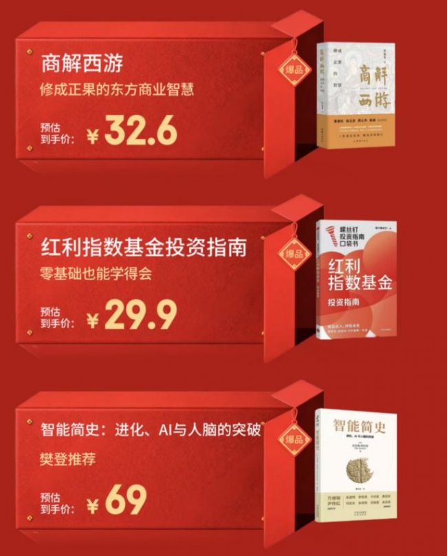 假期正适宜系统学习,解锁新年新视野。《商解西游》从东方经典中挖掘修成正果的商业智慧,让读者在名著解读中收获职场与商业思考,到手价32.6元;《红利指数基金投资指南》专为零基础读者打造,通俗讲解基金投资知识,轻松开启理财之路,到手价29.9元;樊登推荐的《智能简史:进化、AI与人脑的突破》,深度解析AI发展与人类大脑的进化逻辑,带你洞悉科技前沿,到手价69元。三本好书从商业、理财、科技多维度赋能,让读者在春节假期实现认知升级。