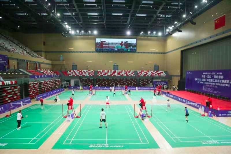 11月24日,浙江省江山市虎山运动公园热闹非凡。李宁体育园彩旗招展,篮球馆内热火朝天。“中国·江山 - 劳动者杯”2023(首届)中国职工羽毛球联赛总决赛正在这里隆重举行。
