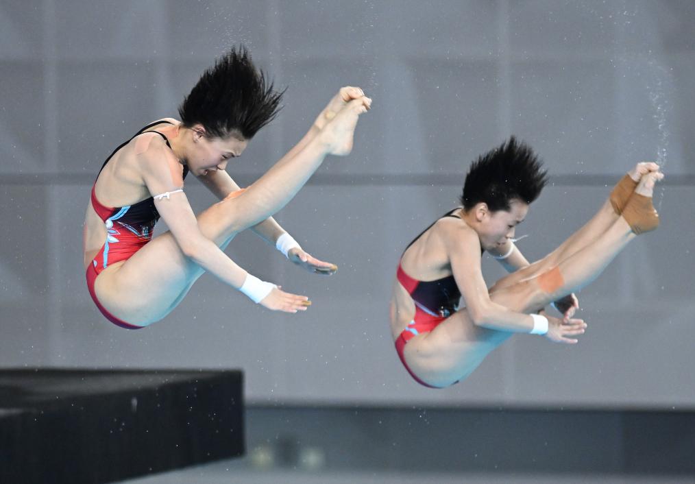 11月26日,全红婵(右)/陈芋汐在比赛中。新华社记者 程敏 摄