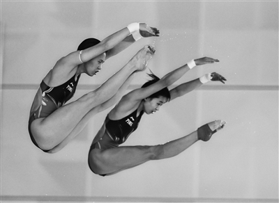 全红婵(右)/陈芋汐在比赛中。新华社记者 程敏摄