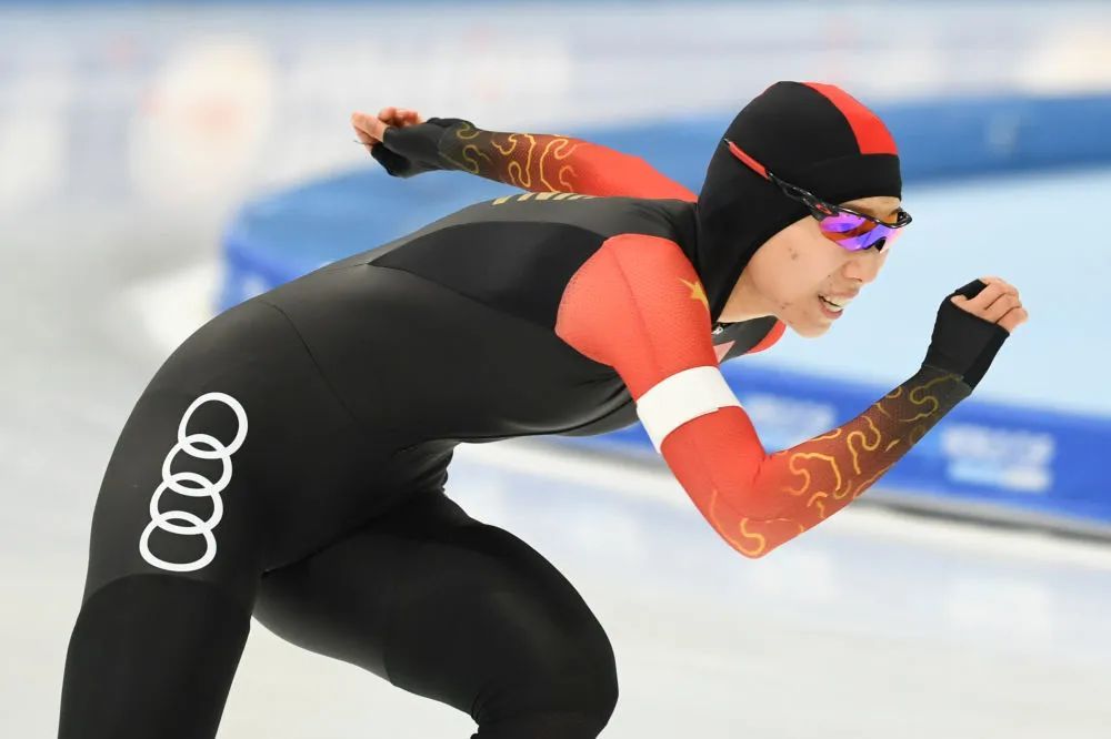 李奇时在2023-2024赛季国际滑联速度滑冰世界杯(北京站)女子1000米A组比赛中(新华社)