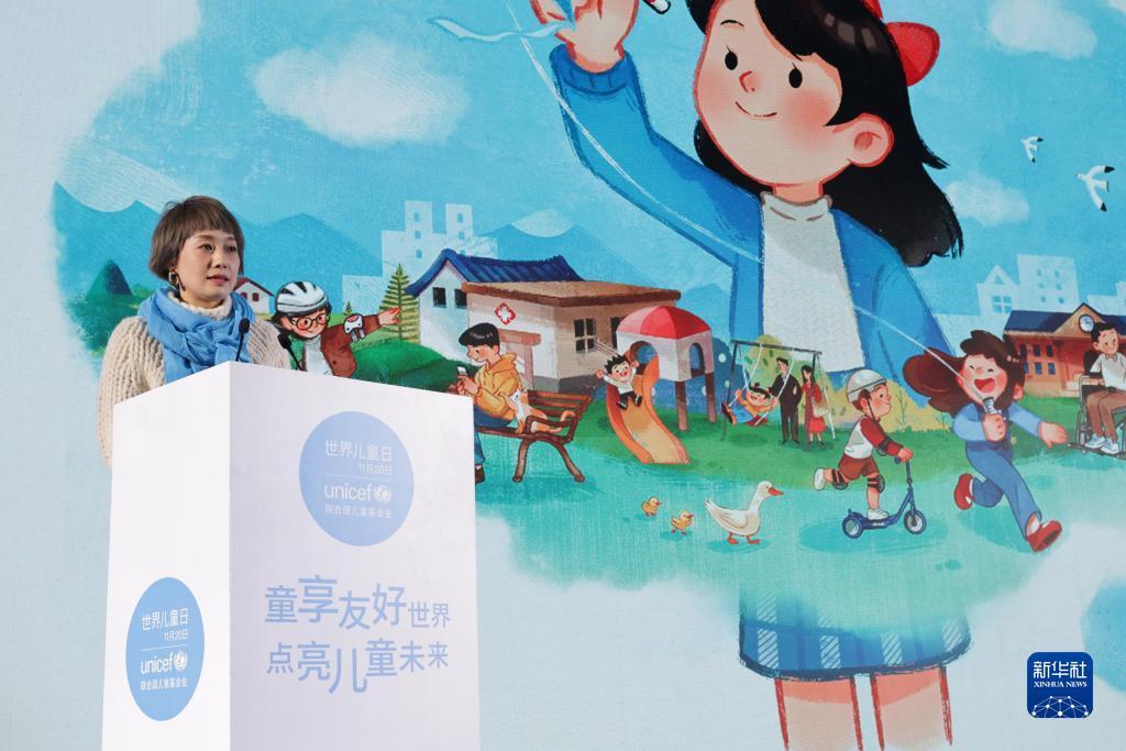 11月20日,联合国儿童基金会大使马伊俐在活动上致辞。