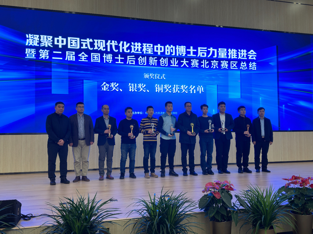 2023年10月26日-28日,在第二届全国博士后创新创业大赛总决赛上,北京市人力资源社会保障局组织部分中央在京单位和北京市市属单位联合组成的北京代表团荣获1金4银3铜,奖牌数位列各省级代表团前列。同时,北京市获得优秀组织奖。在当天的推进会上,宣读了《关于通报表扬第二届全国博士后创新创业大赛北京赛区参赛单位及项目团队的通知》,并为相关单位和人员颁发了奖杯和证书。