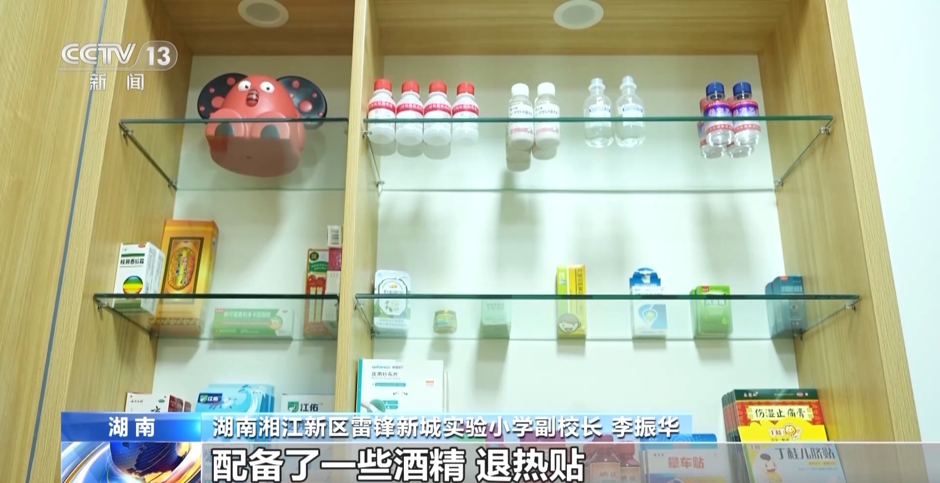 湖南湘江新区雷锋新城实验小学副校长 李振华:姜茶能够驱寒,我们这个卫生室里面配备了一些酒精、退热贴以及常备药品。