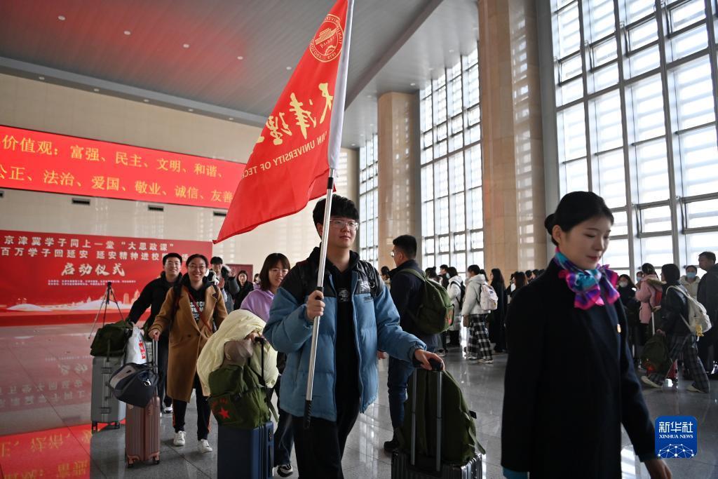 当日,京津冀学子同上一堂“大思政课”暨“百万学子回延安延安精神进校园”活动启动仪式在天津火车站举行。来自北京师范大学、南开大学、河北工业大学等13所高校的约300名师生,将赴延安开展为期一周的红色研学实践活动。