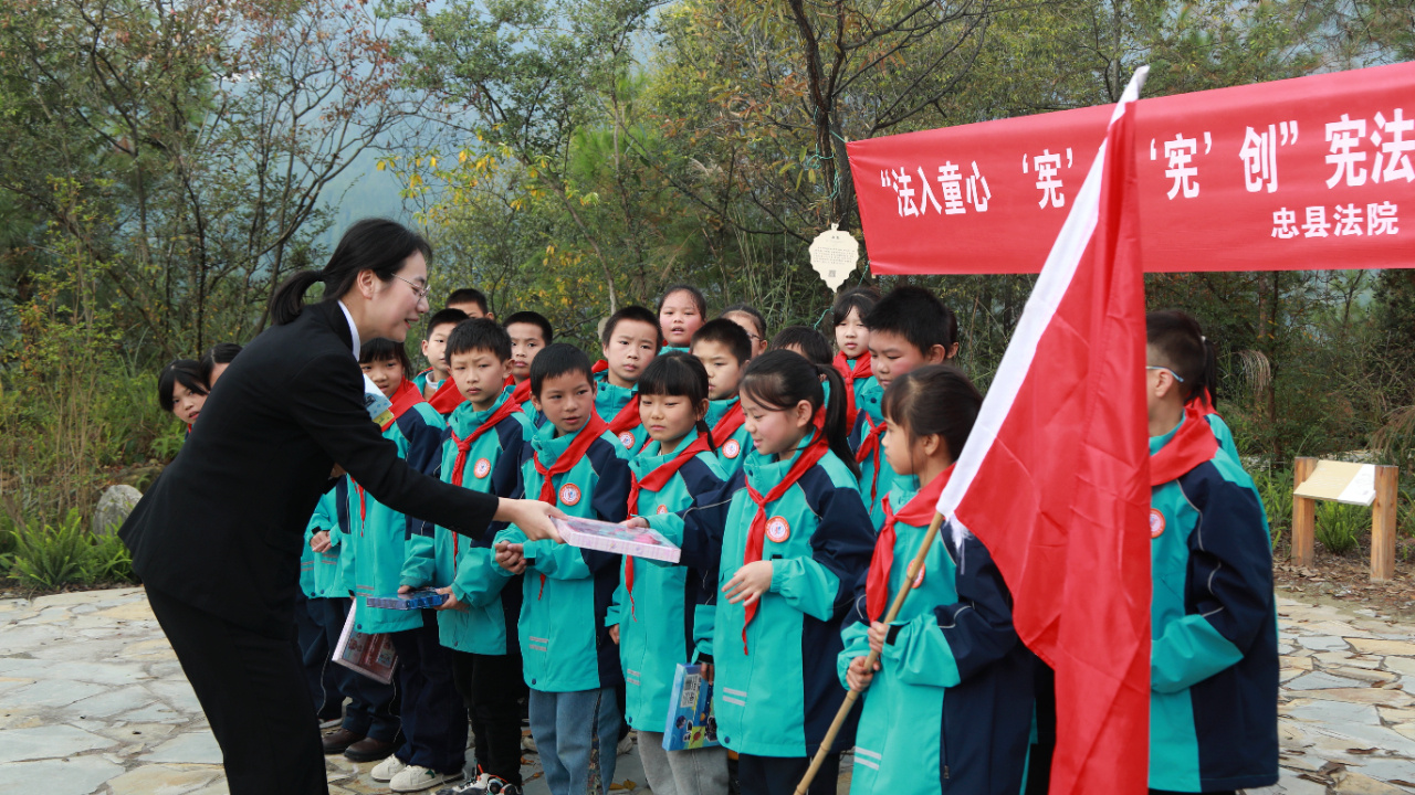 12月4日,是第十个国家宪法日。当天,重庆忠县人民法院联合任家镇中心小学校开展了“法入童心 ‘宪’学‘宪’创”主题活动,30多名师生走进重庆市生态环境司法保护周武山教育基地,“沉浸式”体验普法教育。通过“面对面”普法教育进一步增强师生们法治观念,提升知法、懂法、守法意识。