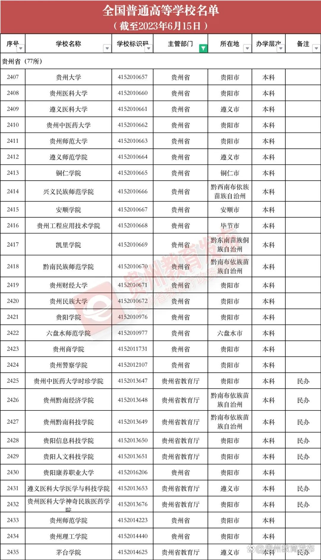 原标题:最新!教育部发布全国高校名单(截至2023年6月15日)
